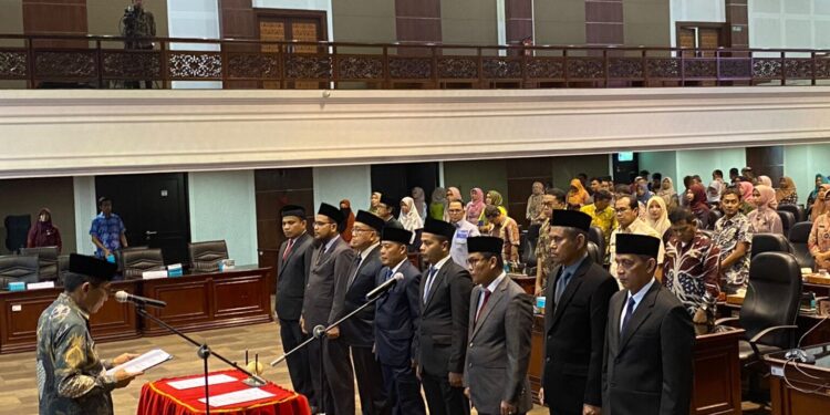 Tampak acara pelantikan dihadiri Sekretaris DPRD Provinsi Sumatera Barat H. Raflis, pejabat struktural, pejabat fungsional, ASN dan PTT, tenaga outsoursing di lingkungan sekretariat DPRD Provinsi Sumbar dan undangan. (*)