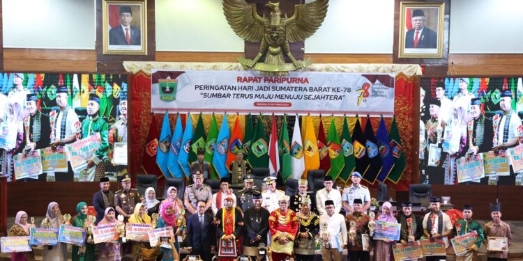 SALINGKANEWS.COM— Dewan Perwakilan Rakyat Daerah (DPRD) Provinsi Sumatera Barat menggelar rapat paripurna istimewa dalam rangka Hari Jadi Sumatera Barat ke-78 dengan tema “Sumbar Terus Maju Menuju Sejahtera” di ruang sidang utama kantor DPRD Sumbar, Minggu (01/10/2023).
