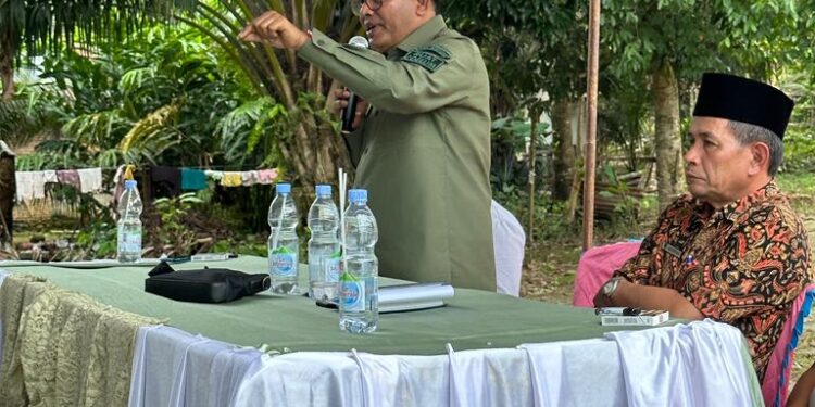 SALINGKANEWS.COM — Anggota Komisi II DPRD Sumbar Syamsul Bahri melaksanakan Kegiatan Sosialisasi Peraturan Daerah (Perda) Nomor 3 Tahun 2023 tentang Tata Kelola Komoditas Unggulan Perkebunan Sumbar di Silaping, Kecamatan Ranah Batahan, Kabupaten Pasaman Barat, Minggu (10/12/2023).