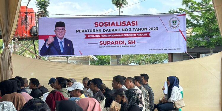 SALINGKANEWS.COM — Ketua DPRD Sumbar Supardi melakukan sosialisasi Peraturan daerah (perda) tentang ekonomi kreatif (ekraf).