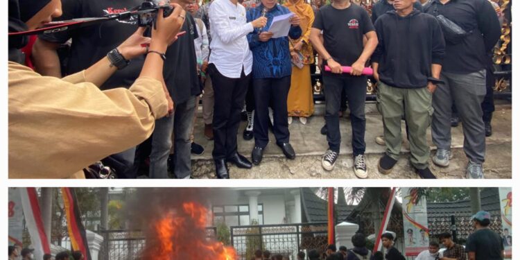 SALINGKANEWS.COM – Puluhan mahasiswa Peduli Demokrasi Sumatera Barat menggelar aksi unjuk rasa di kantor DPRD Provinsi Sumbar, Jum’at (20/10/2023). Dalam aksi unjuk rasa itu para mahasiswa menyayangkan putusan Mahkamah Konstitusi (MK) yang mengabulkan permohonan batas usia calon presiden Republik Indonesia.