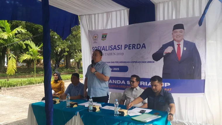 Padang, salingkanews.com – Wakil Ketua Dewan Perwakilan Rakyat Daerah (DPRD) Sumbar, Nanda Satria melaksanakan sosialisasi Peraturan Daerah (Sosper) di Halaman Museum Adityawarman, Belakang Tangsi, Kota Padang, Sabtu (25/10/2025).